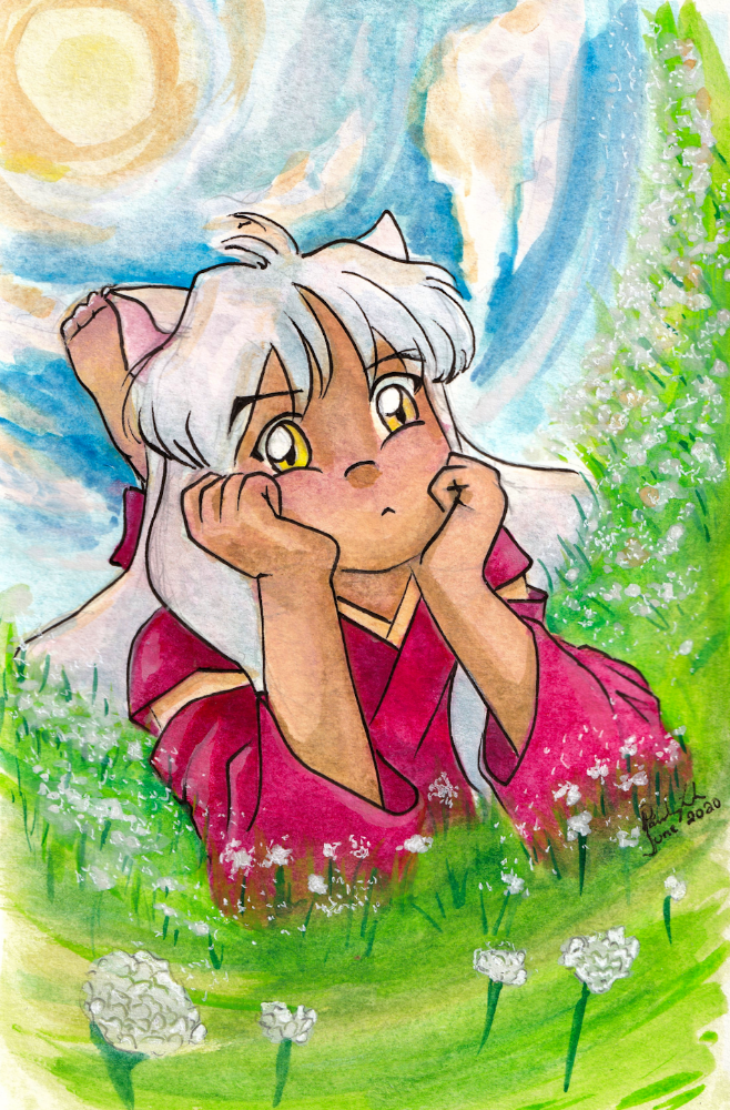 Inuyasha was a requested gift for a friend. Her prompt was “Kid Inuyasha,” which was a challenge because I rarely draw masculine characters or children. I aimed for rounded, shorter features, with a slightly larger head which mostly did the job, but I definitely need to practice.