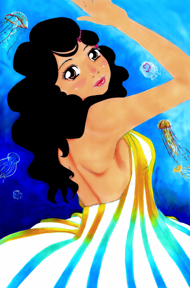 This piece was inspired by the animated series “Princess Jellyfish.” When I initially watched the series there was barely any fanart I vibed with on the internet, so I drew my own! This piece was drawn at 11×17 inch in size, one of my first pieces at this large scale. It posed several issues in that I was not used to drawing this large, and I had to learn how to work my markers so that they blended nicely in such large spaces.