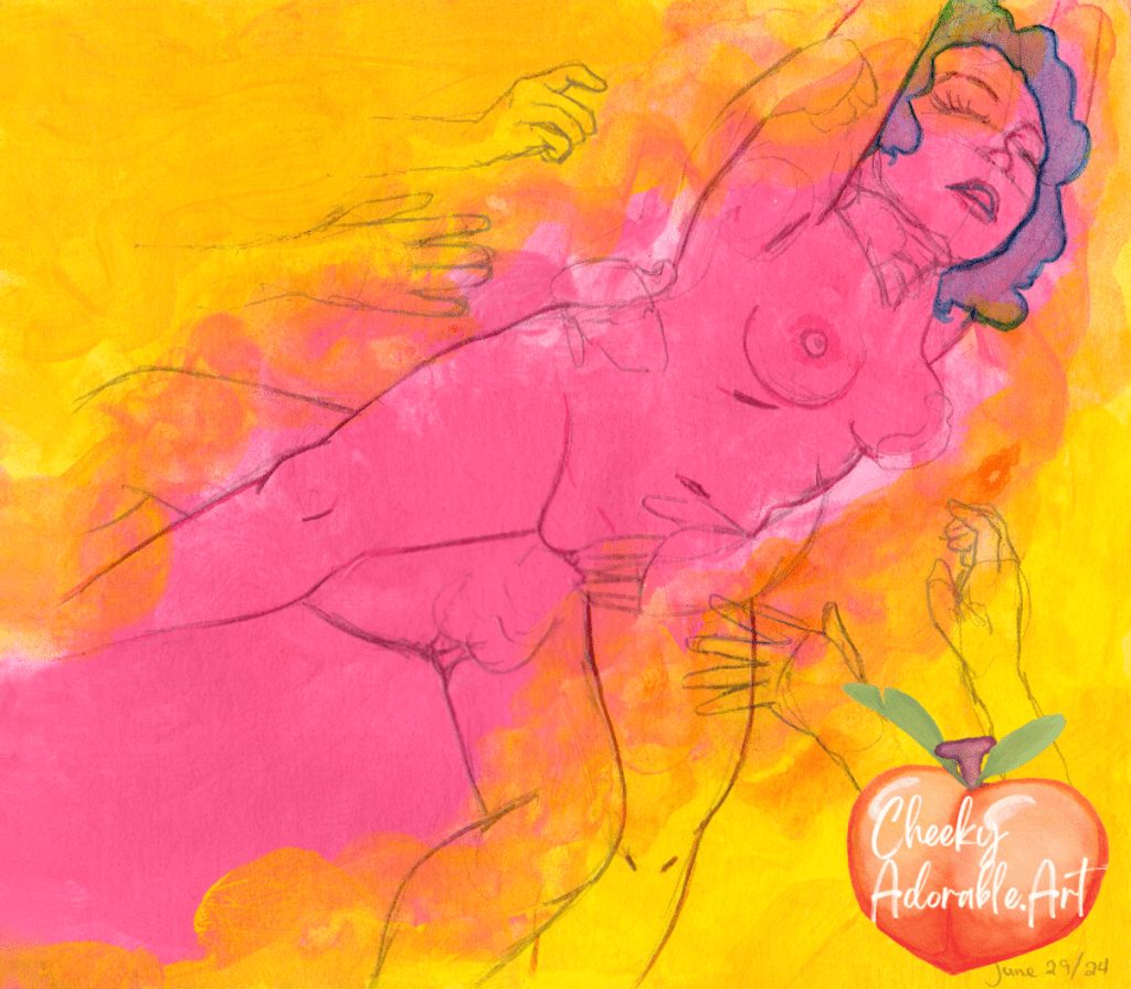 It was never my intention to use these painted pages this way… but I drew this because I saw the art in the shapes created by the paint. To be honest, it seems like a therapy exercise, but it’s pretty obvious what was on my mind at the time.