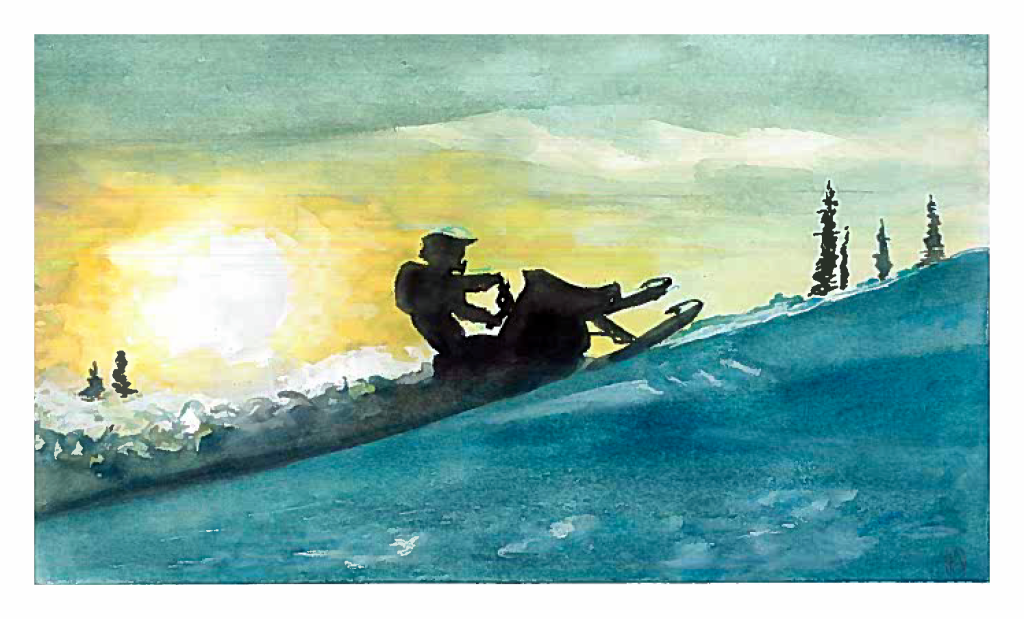 A friend of mine loves to go snowmobiling in the mountains on the weekends during the winter, but he also comes back with some seriously cool photos and video footage. Since I spent this Christmas painting everyone’s gifts I included him. Capturing the lighting and snow in this was quite difficult for me. Painting snow while avoiding whites and capturing the unique colours in the sunset is very challenging.